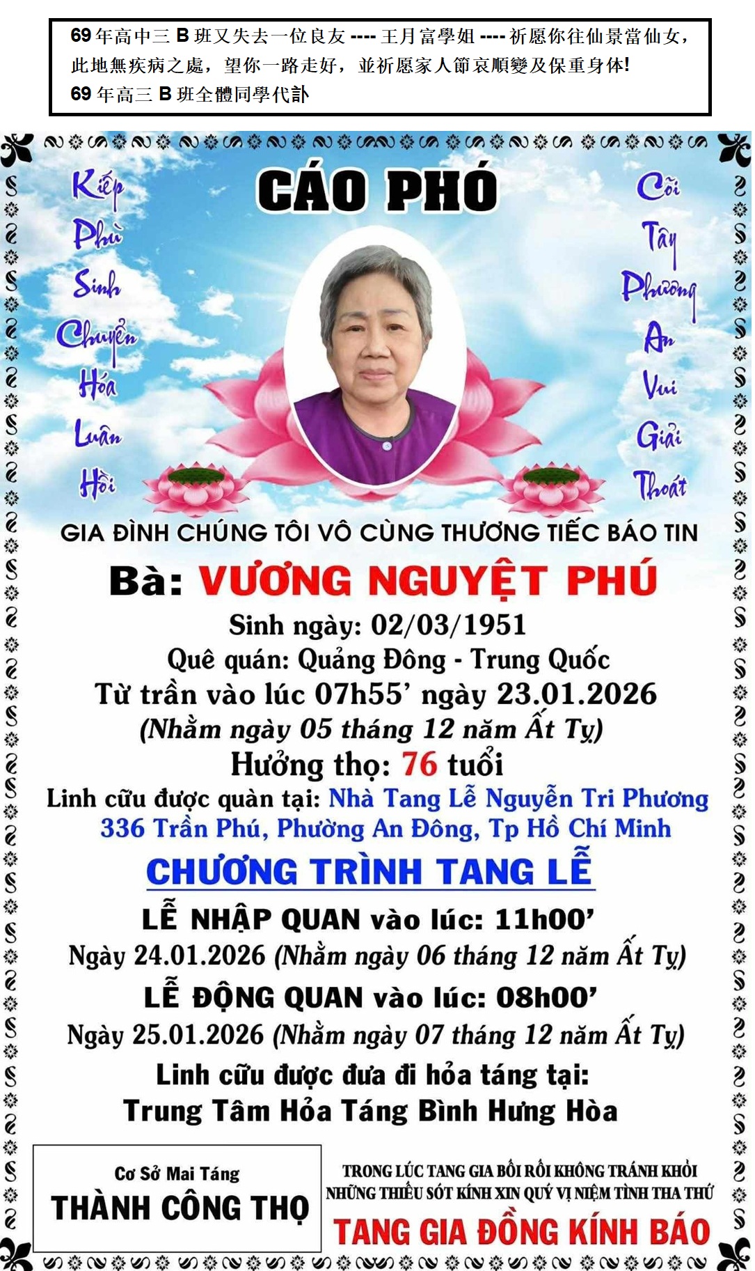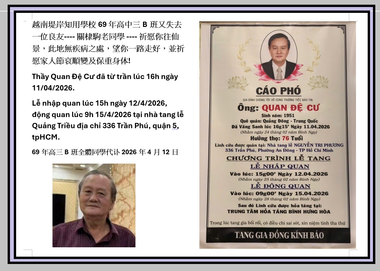 YouTube(郭在年編製): 知用中學紀念冊1966年 高三B班同學1969年 生活点滴 1 高中一,二 1967-1968 點滴生活 2 高三B班 生活點滴 3 2021年重陽節 送給我的老學一首歌:端起這杯酒 送给我的老同学"深深的懷念" 舊事重提-送给69年30屆B班同學 2025 老同學又聚首 2023 元旦, 一曲“人生” 痛失良友 王缵利同學 (Los Angeles) Sep 16,2022 王錦權同學 (台北) Jul 05,2025 王月富同學 (Vietnam) Jan 23,2026 郭海源同學 (Vietnam) Mar 28,2026 関棣駒同學 (Vietnam) Apr 11,2026